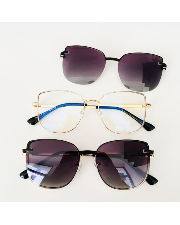 Você está adquirindo uma armação DOIS EM UM, ou seja, essa armação acompanha a lente solar Clip-on, essa lente é encaixada na armação através de um imã. A lente solar possui UV400 de proteção contra os raios solares.