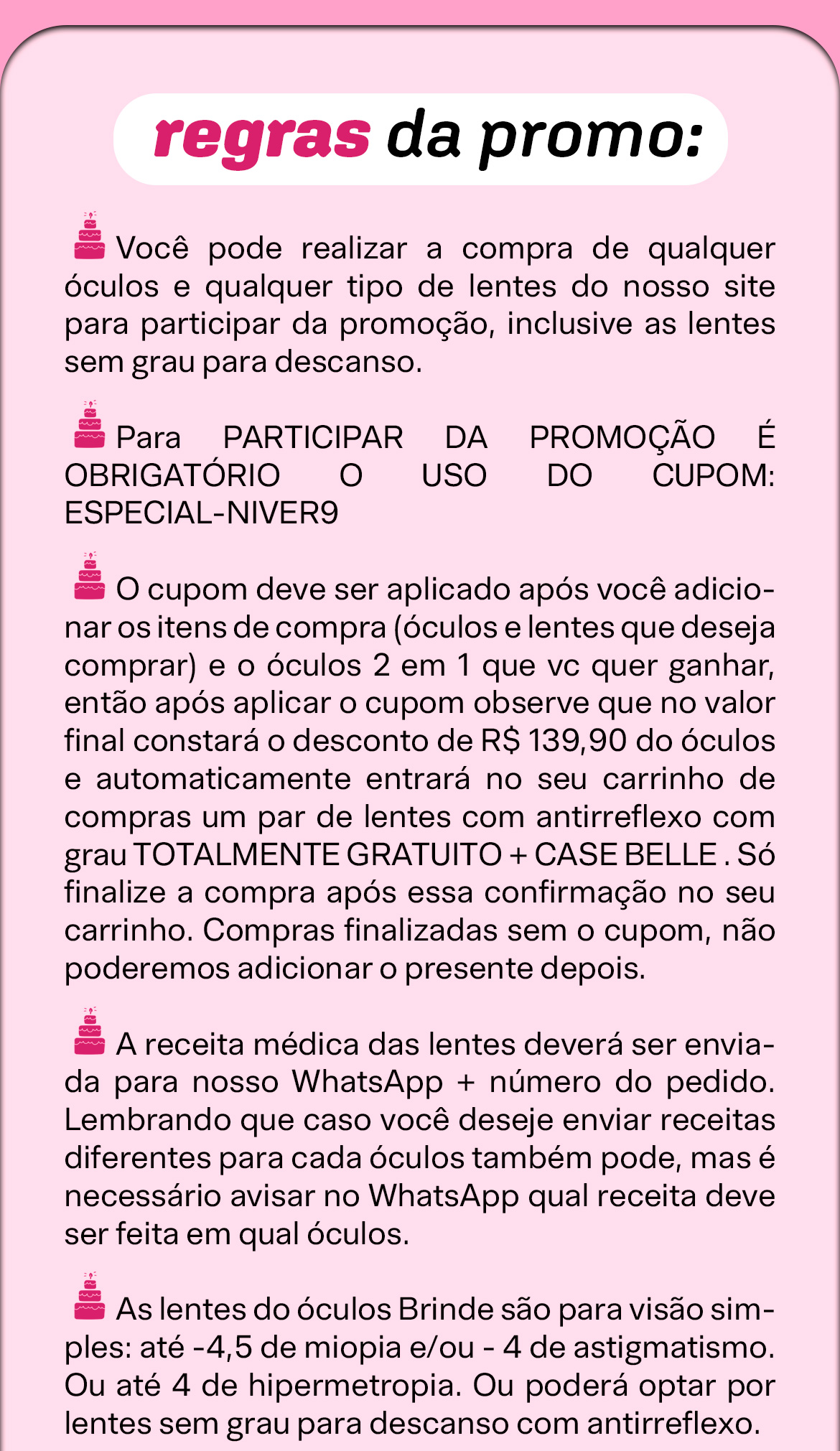 Explore nossa ampla seleção de armações modernas e estilosas, escolha suas lentes personalizadas e faça seu pedido com facilidade. Nossa equipe de especialistas está pronta para ajudar e garantir que você tenha a melhor experiência de compra possível.