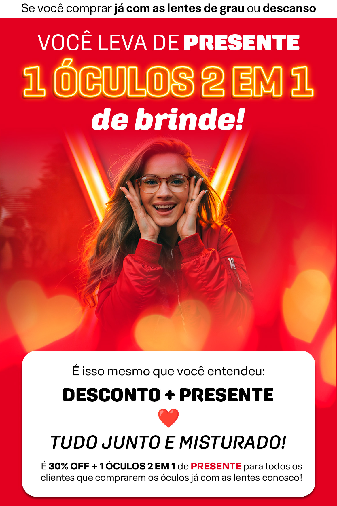 Óculos 2 em 1 Solar e Grau
